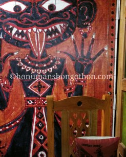 রঙিন আরশিওলা কাঠের দরজা। হাতল ঘুরিয়ে ভেতরে ঢুকতেই দেখি ফেলুদা থমকে দাড়ালো। পাশ দিয়ে উঁকি মেরে দেখলাম লালমোহনবাবুর মুখ ফ্যাকাশে।