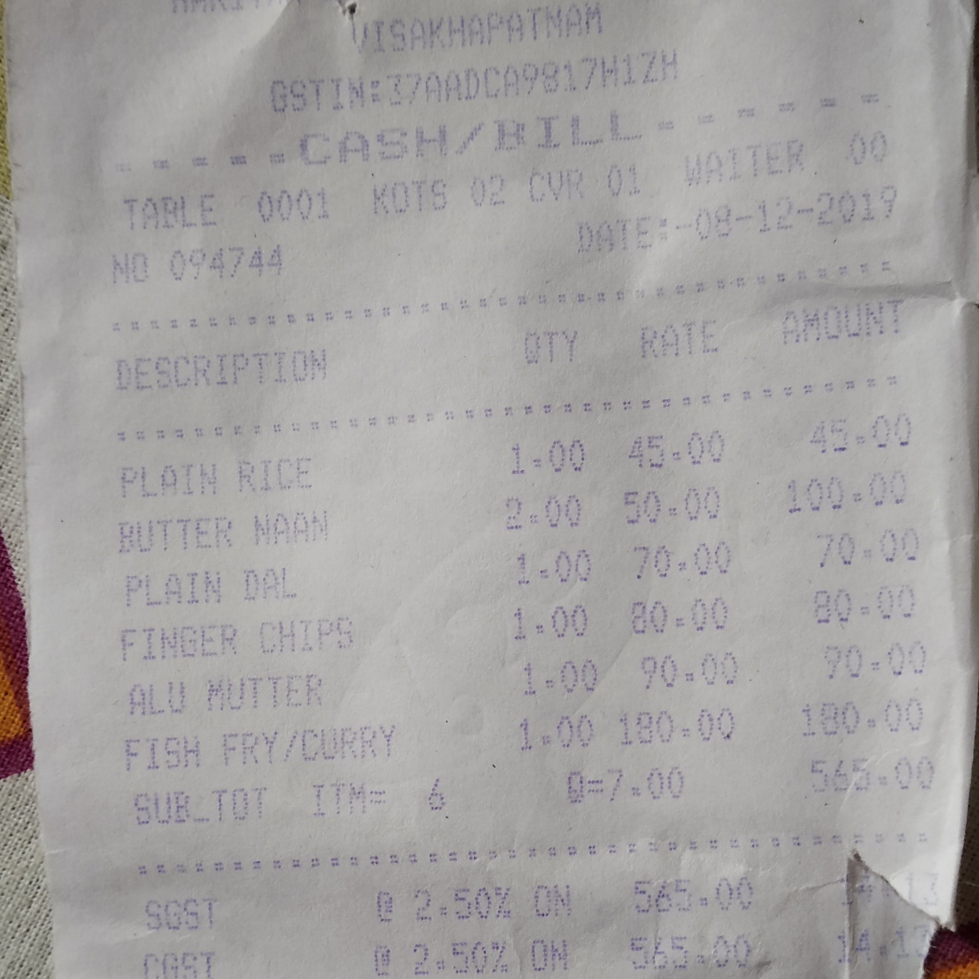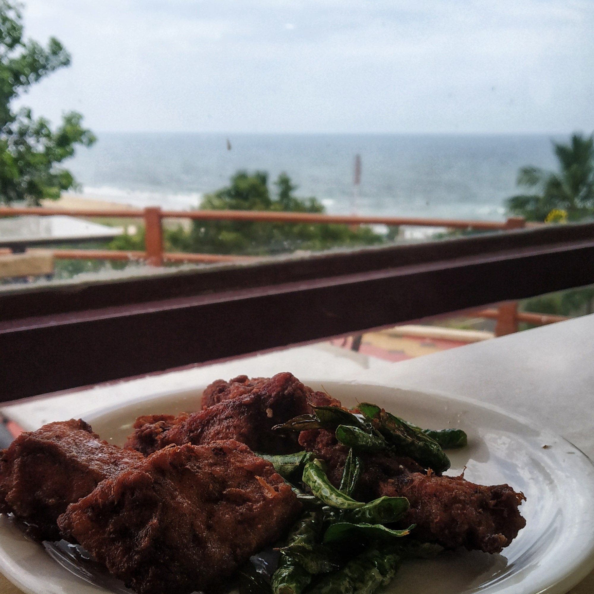 Next day lunch at Rushikonda, we wanted to try this place just because of the magnificent view of the sea from the restaurant on top of a hill. We kept it simple – again some Fish Fry complimented with some Nan and Aloo Matar. Fish Fry was again awesome – made me realize that this dish can never go wrong here! Rest was pretty standard fare but the view again was to kill for! Check out the photo below – that was taken from the balcony of the restaurant.