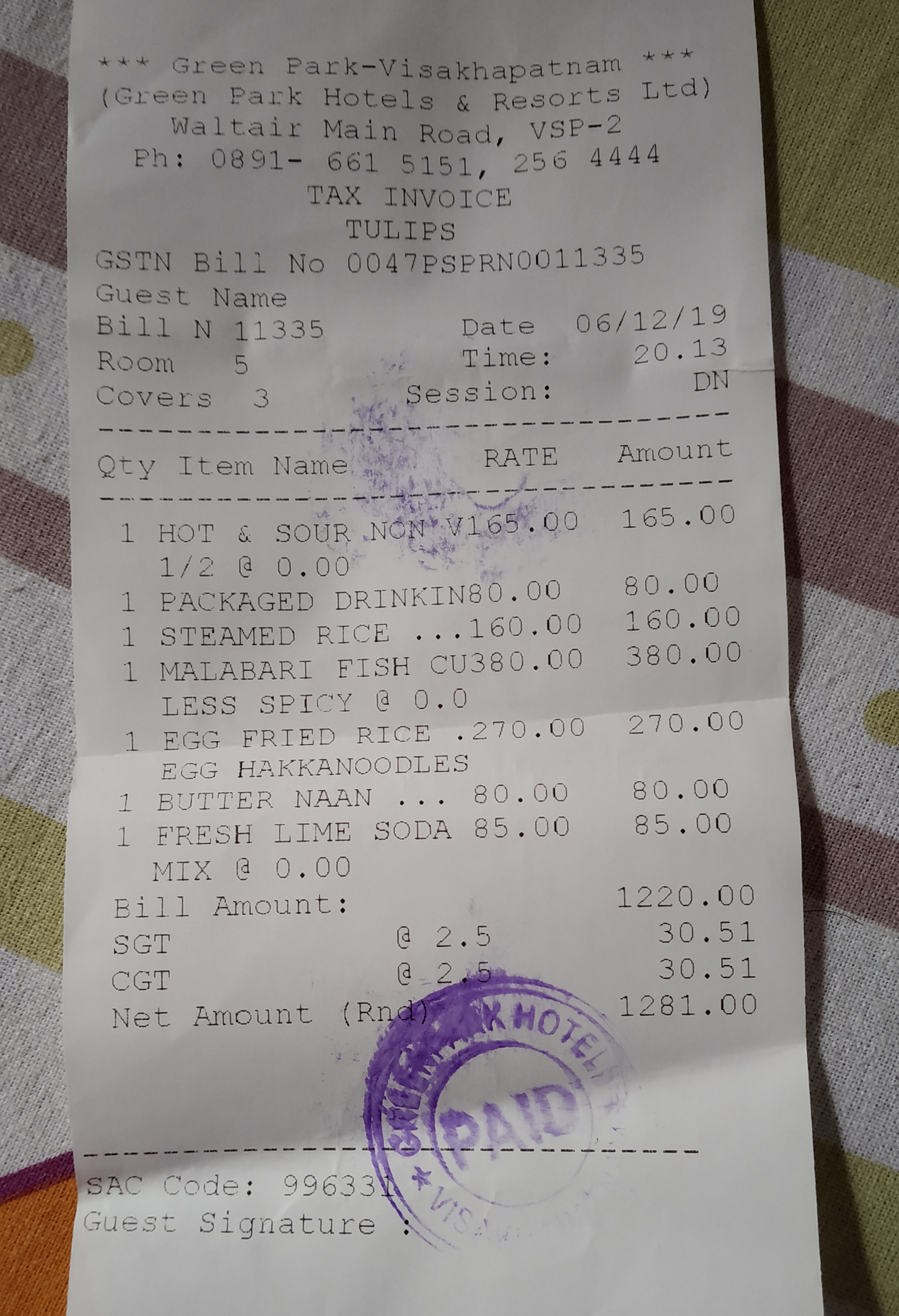 Tulips in Hotel Green Park, Vizag