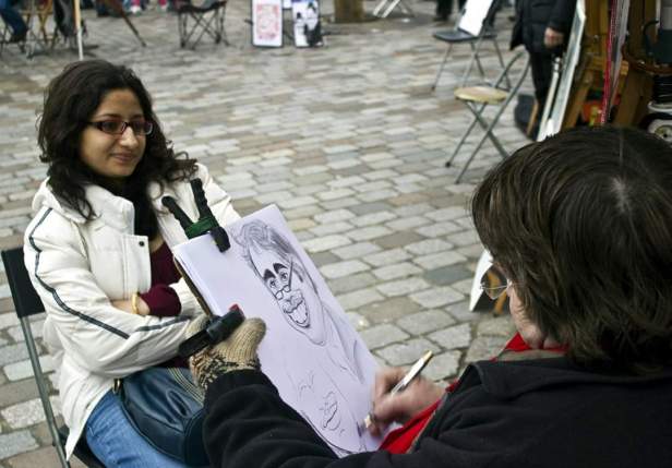 Like all travelers, we visited The Basilica of the Sacred Heart of Paris, commonly known as Sacré-Cœur Basilica and often simply Sacré-Cœur, Mont-marte which is a very unique ensemble of art and culture. There used to a medium sized open air art market (behind the chapel) where different artists used to bring their paintings, sculpture and display for sale. The highlight though were the cartoonists – creating live cartoon images of travelers, old or young and they were pretty awesome.