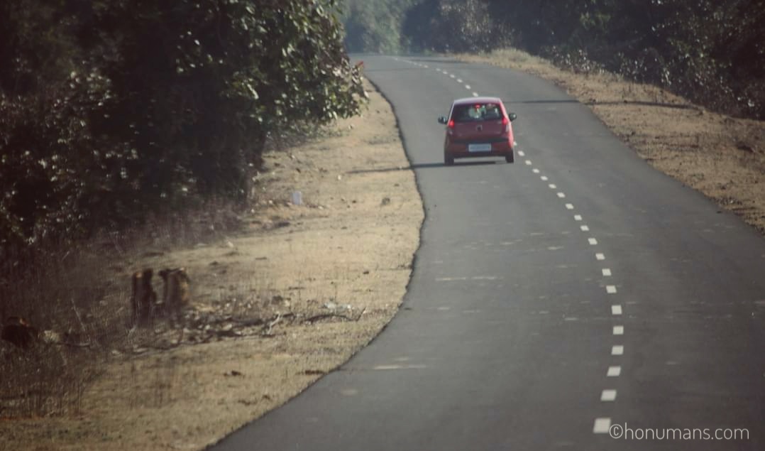 By the time, we were about to start from Bandhavgarh, we had already covered a distance more than 1500 kms on Indian highways without overshooting our ETA by a big margin. So on the penultimate day, we were pretty sure that 400 kms will easily be covered in 10 hours time and so we left the jungle at 7.30am. Here is us posing for the final time in Bandhavgarh and little did we know what lay ahead.